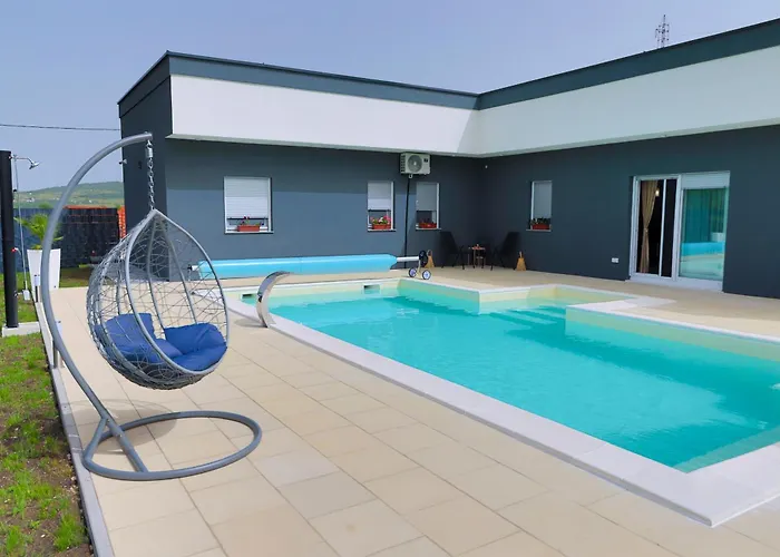 Situated 2.8 km from the Sokolac Tower, the 1-bedroom Villa De Luxe Infinity Bihac features a terrace with views of the mountain. Offering a private swimming pool, this property invites guests to visit the Fethija Mosque, located approximately 15 minutes' drive away.